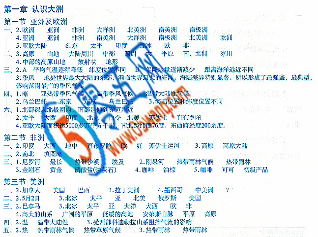 2017湘教版七年級地理下冊第一章認識大洲答案