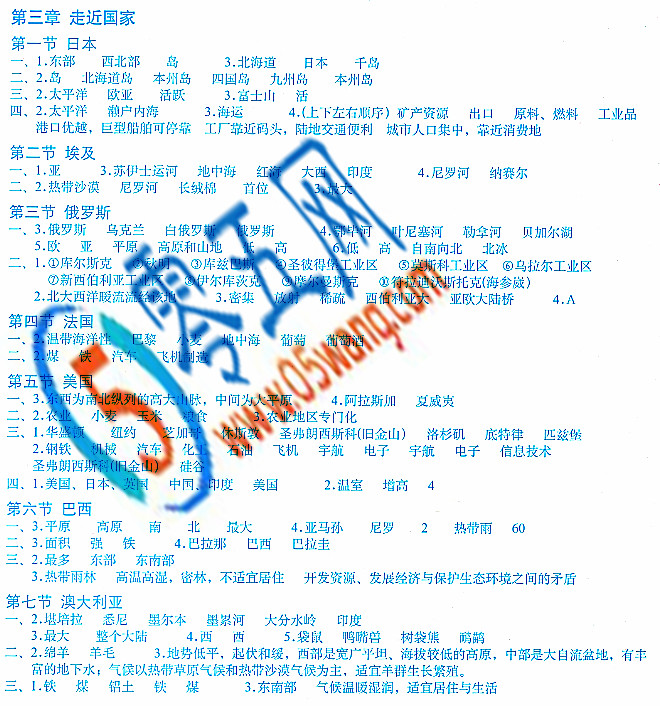 2017湘教版七年級(jí)地理下冊(cè)第三章走進(jìn)國家答案