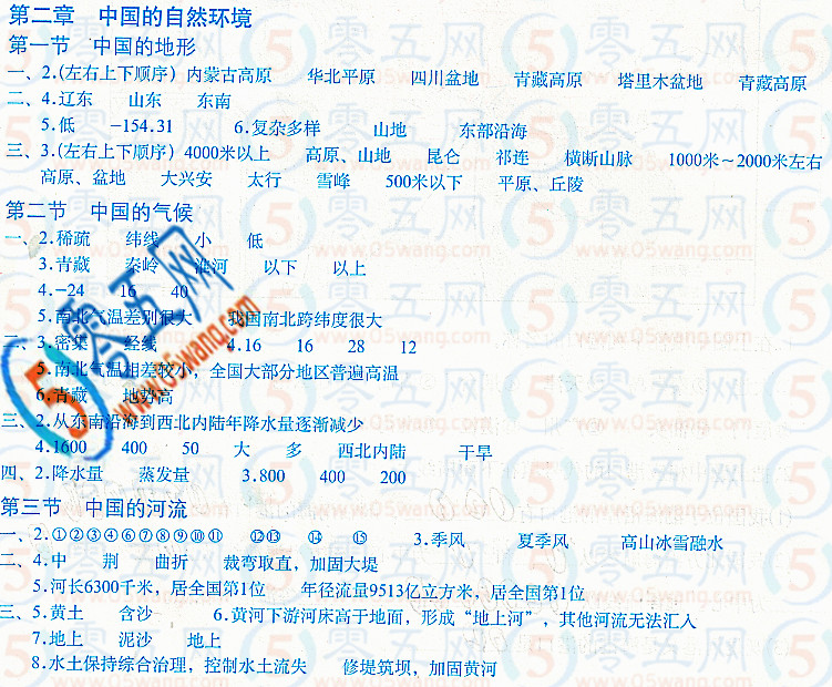 第二章中國的自然環(huán)境地理填充圖冊答案