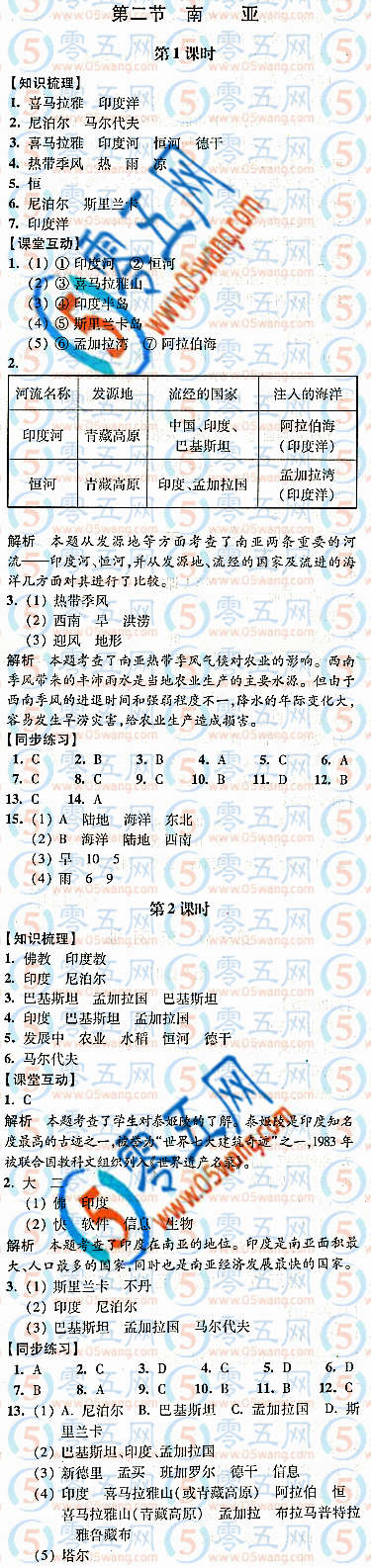 第二節(jié)南亞同步練習(xí)答案