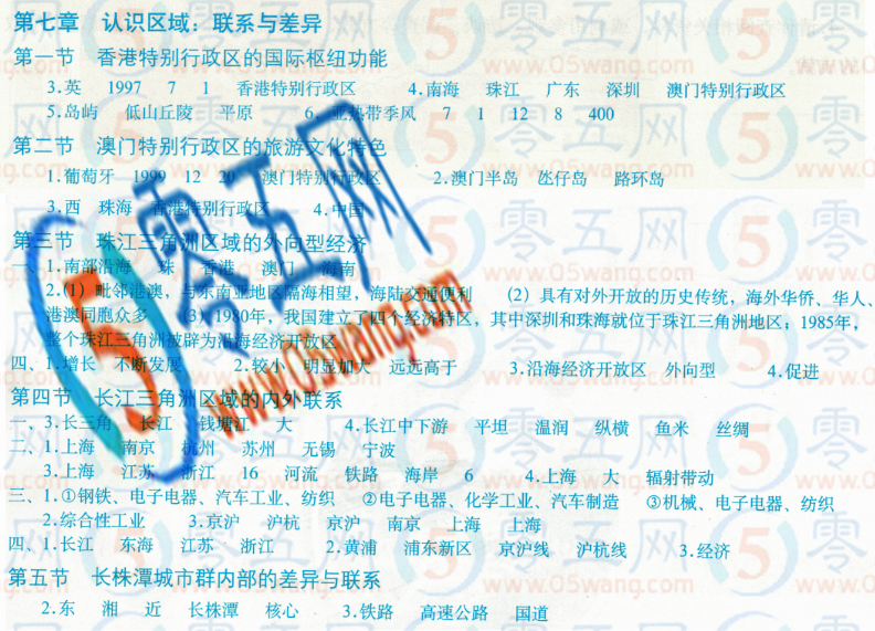 第七章認(rèn)識區(qū)域:聯(lián)系與差異地理填充圖冊答案