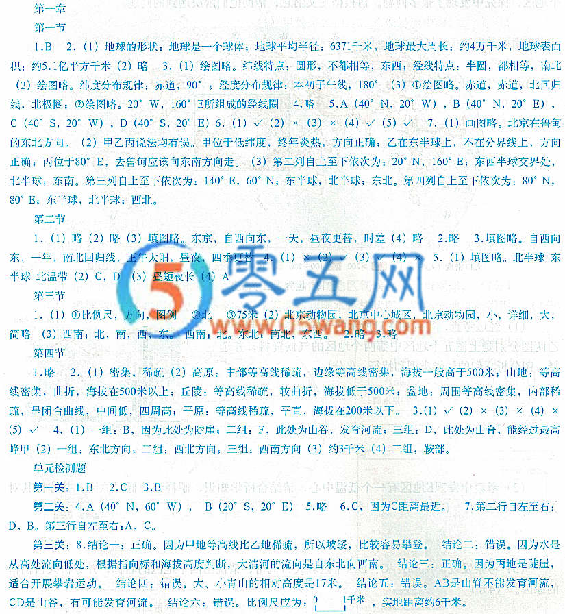人教版七年級(jí)上冊(cè)地理填充圖冊(cè)第一章答案
