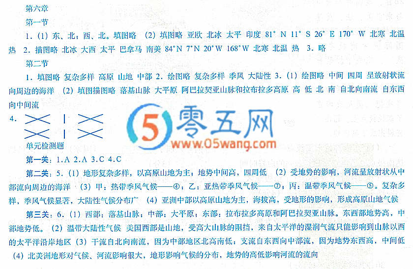 2017人教版七年級(jí)下冊(cè)地理填充圖冊(cè)第六章答案