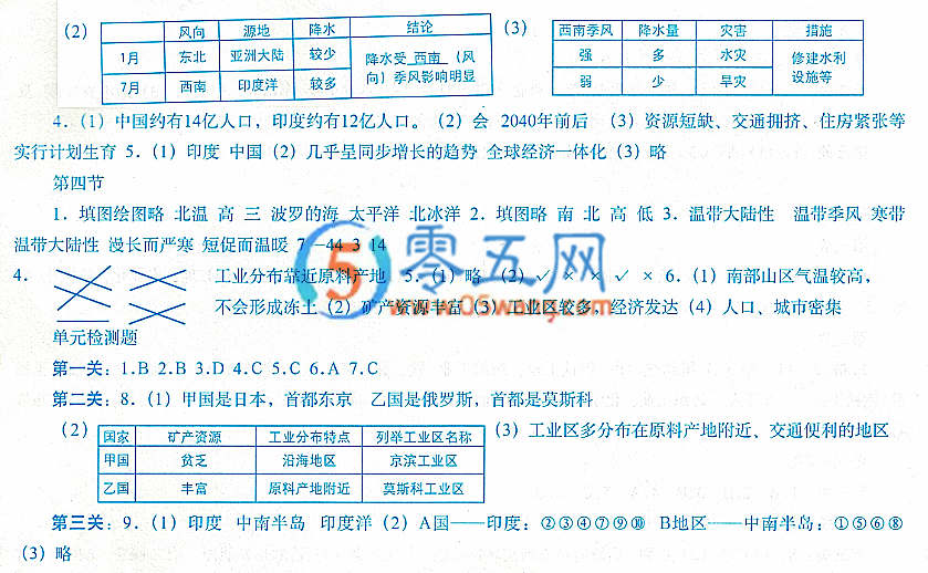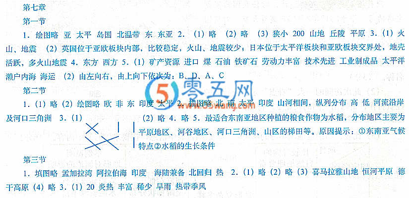 2017人教版七年級(jí)下冊(cè)地理填充圖冊(cè)第七章答案