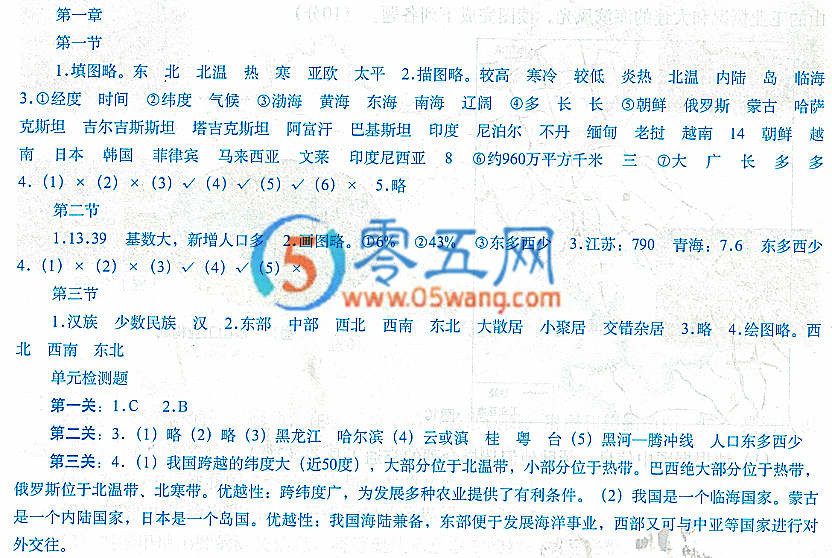 人教版八年級(jí)上冊(cè)地理填充圖冊(cè)第一章答案
