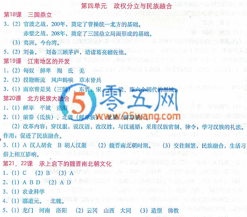 中國歷史填充圖冊(cè)答案七年級(jí)上冊(cè)第四單元