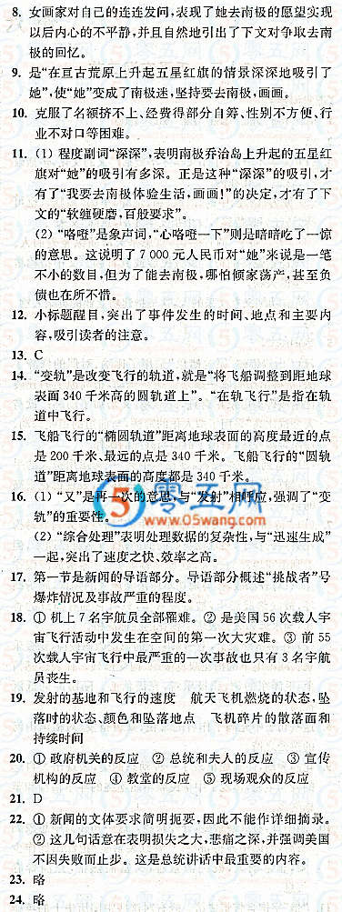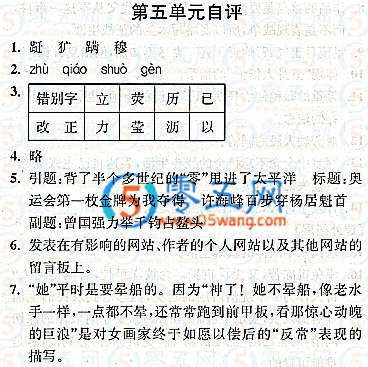 七下語文第五單元自評(píng)同步練習(xí)答案