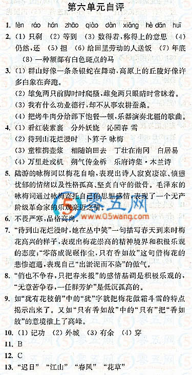 七下語文第六單元自評(píng)同步練習(xí)答案