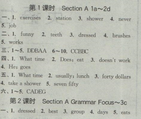 人教版七年級下冊英語課時作業(yè)本Unit 2 笫1課時SectionA