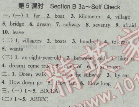 人教版七年級下冊英語課時作業(yè)本Unit 3第3課時Self Check答案