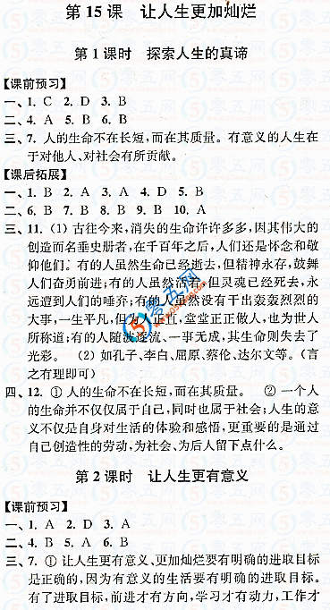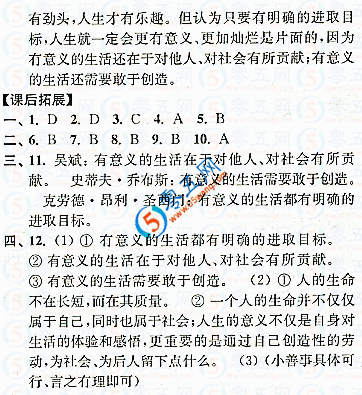 蘇人版七下思想品德第15課讓人生更加燦爛同步練習(xí)答案