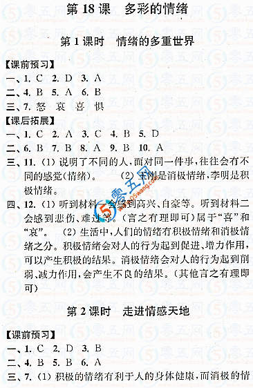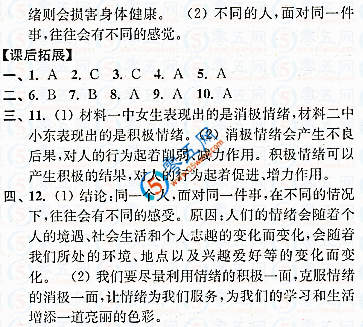蘇人版七下思想品德第18課多彩的情緒同步練習(xí)答案