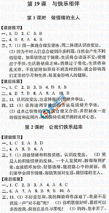 蘇人版七下思想品德第19課與快樂(lè)相伴同步練習(xí)答案