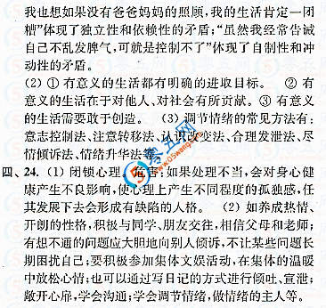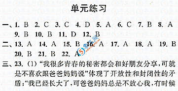 蘇人版七下思想品德第四單元練習(xí)同步練習(xí)答案