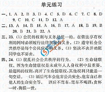 蘇人版七下思想品德第五單元練習(xí)同步練習(xí)答案