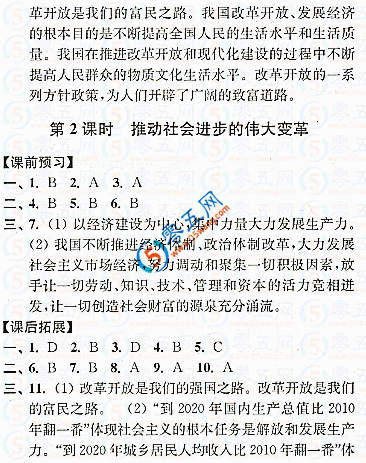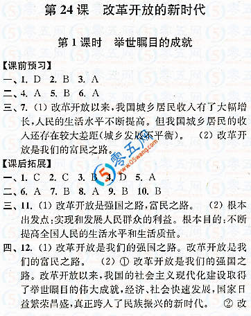 蘇人版七下思想品德第24課改革開(kāi)放的新時(shí)代同步練習(xí)答案