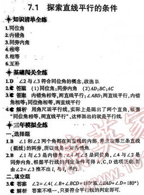 5年中考3年模擬初中數(shù)學七年級下冊蘇科版7.1