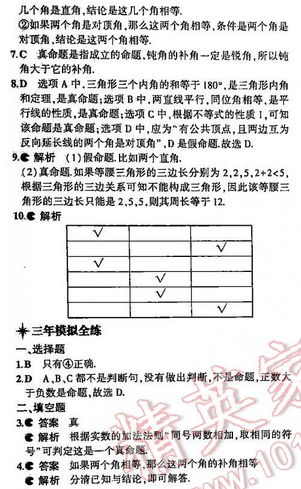 5年中考3年模擬初中數(shù)學(xué)七年級(jí)下冊(cè)蘇科版12.1