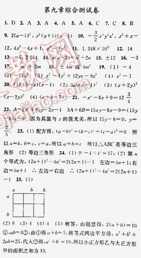 【亮點給力作業(yè)本七年級數(shù)學(xué)下冊江蘇版】第九章綜合測試卷