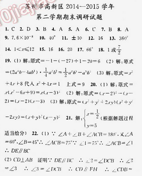 【亮點(diǎn)給力作業(yè)本七年級數(shù)學(xué)下冊江蘇版】蘇州市高新區(qū)