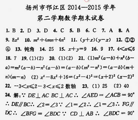 【亮點(diǎn)給力作業(yè)本七年級(jí)數(shù)學(xué)下冊(cè)江蘇版】揚(yáng)州市邗江區(qū)