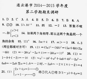 【亮點(diǎn)給力作業(yè)本七年級(jí)數(shù)學(xué)下冊(cè)江蘇版】連云港市
