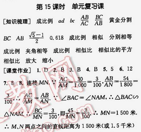 2016課時(shí)作業(yè)本九年級(jí)數(shù)學(xué)下冊(cè)江蘇版第6章第15課時(shí)