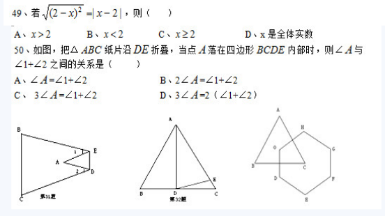 最新中考數(shù)學(xué)選擇題易錯(cuò)題100題(5)
