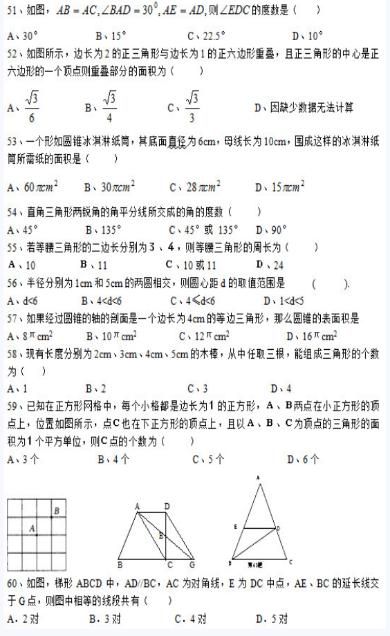 最新中考數(shù)學(xué)選擇題易錯(cuò)題100題(6)
