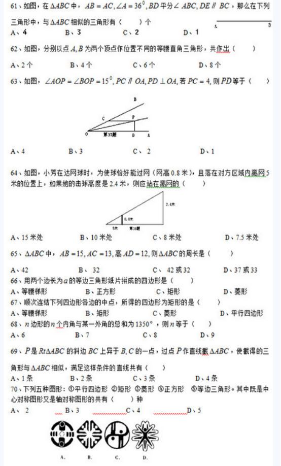 最新中考數(shù)學(xué)選擇題易錯題100題(7)