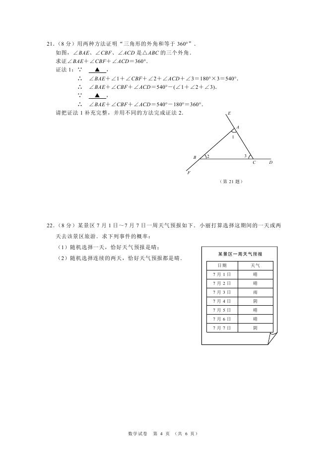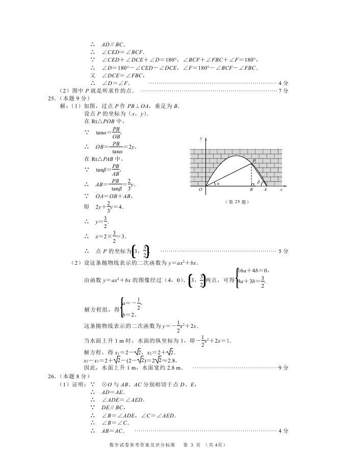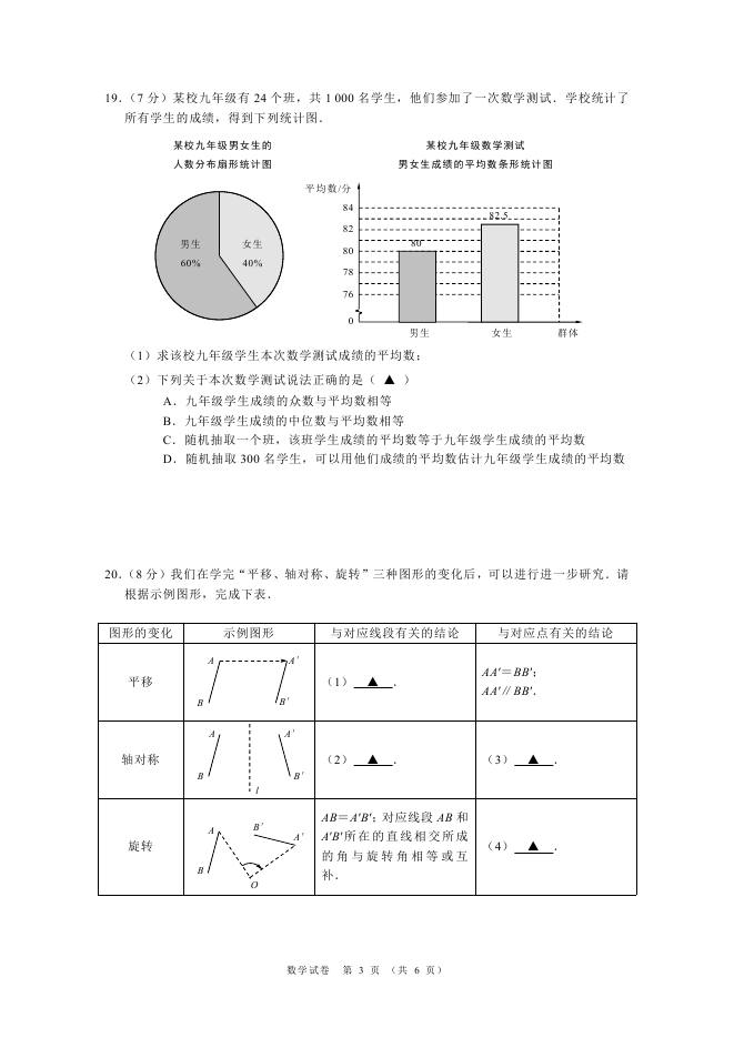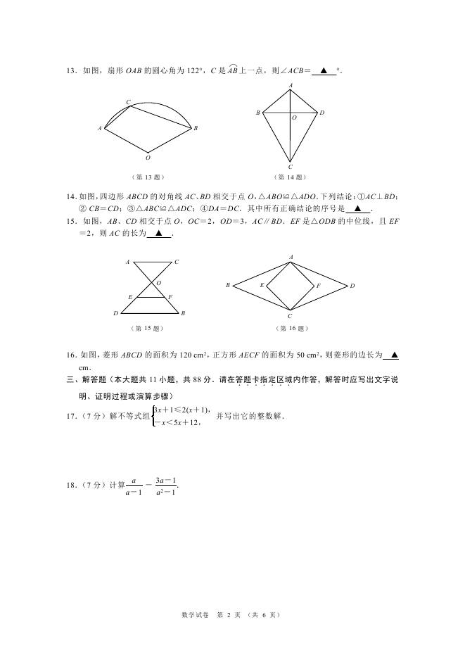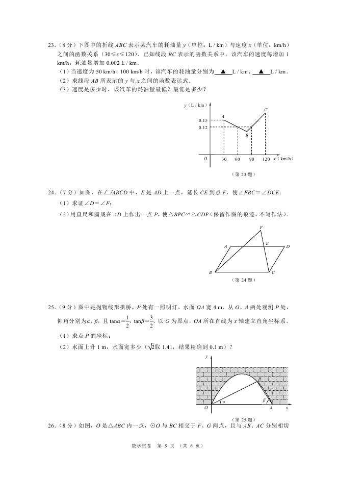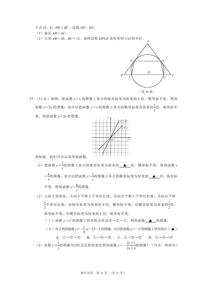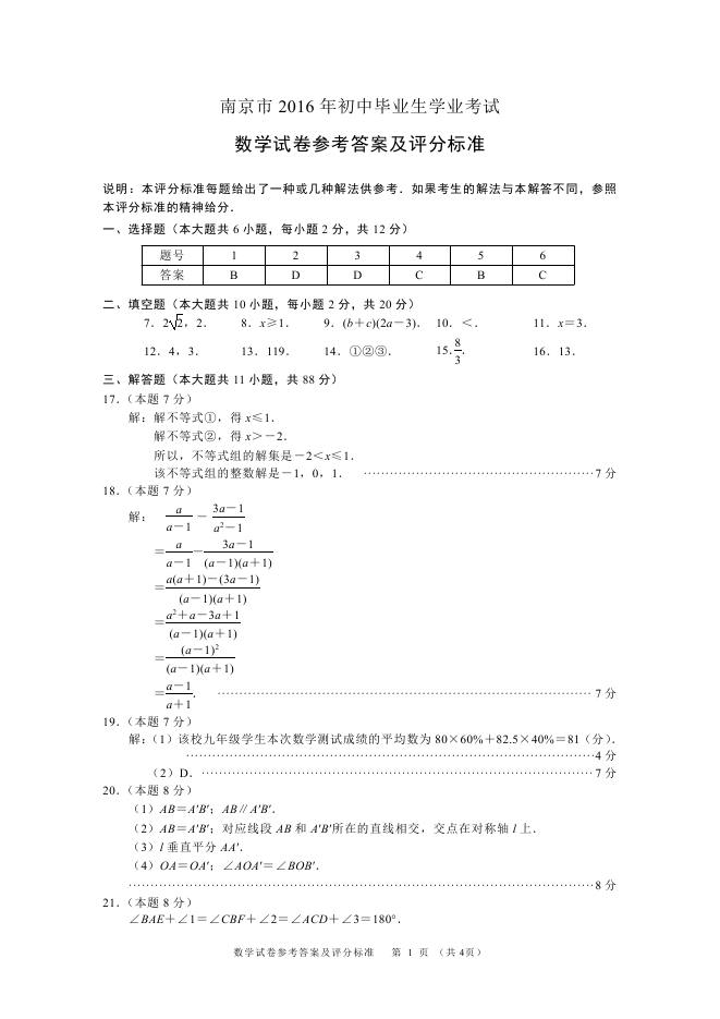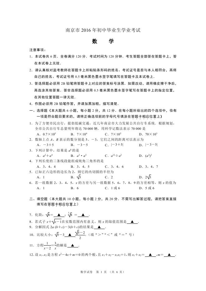 2016年江蘇南京中考數(shù)學(xué)卷子及答案