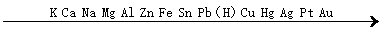 金屬活動(dòng)性由強(qiáng)逐漸減弱