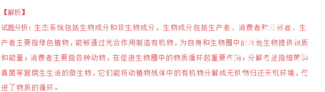 考點(diǎn):生態(tài)系統(tǒng)的組成與食物鏈和食物網(wǎng)。