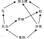 【答案】(1)4 植物—昆蟲—青蛙—蛇—貓頭鷹 (2)非生物因素 (3)逐級(jí)遞減 (4)貓頭鷹