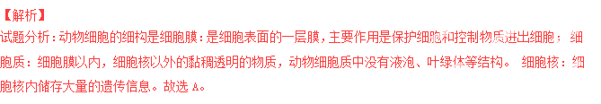 【點睛】本題考查動物細胞與植物細胞的異同,共有的結(jié)構(gòu)是細胞膜、細胞質(zhì)、細胞核、細胞質(zhì)中有線粒體,而不同的是植物細胞多了細file:///C:/Users/QINGXI~1/AppData/Local/Temp/ksohtml/wps8CEC.tmp.jpg胞璧地、葉綠體和液泡。
