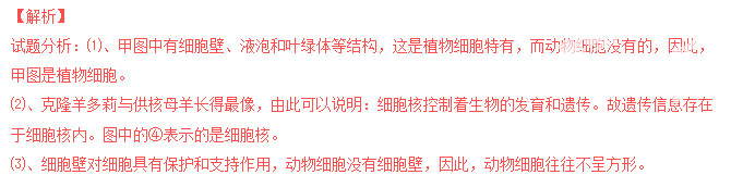 (3)乙細(xì)胞的最外層沒有 (填圖中序號(hào))的支持作用,所以動(dòng)物細(xì)胞往往不呈方形。