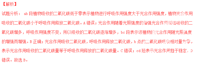 C、b點(diǎn)表示該植物既不進(jìn)行光合作用,也不進(jìn)行呼吸作用