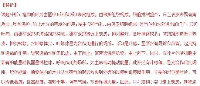 考點(diǎn):葉片的結(jié)構(gòu)和功能,蒸騰作用的概念。