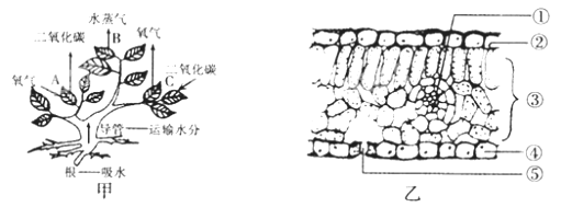 (2)植物根吸收的水分絕大部分以水蒸氣的形式從——(填圖乙中標(biāo)號(hào))散失。