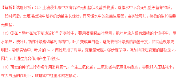 考點(diǎn):探究植物的生長(zhǎng)需要無機(jī)鹽、綠葉在光下制造淀粉、呼吸作用的實(shí)驗(yàn)。