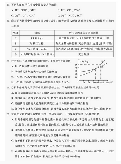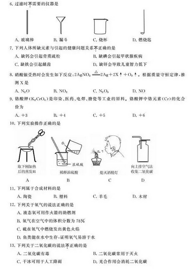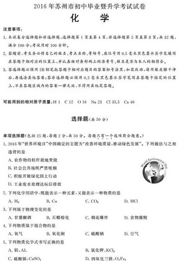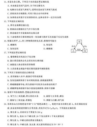 2016年江蘇中考化學選擇題