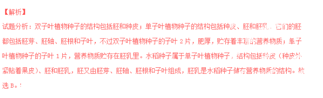 A、胚乳 子葉 B、胚乳 胚 C、胚 子葉 D、子葉 胚乳
