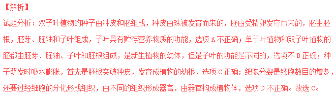 D、種子萌發(fā)后依靠細(xì)胞分裂發(fā)育成幼苗