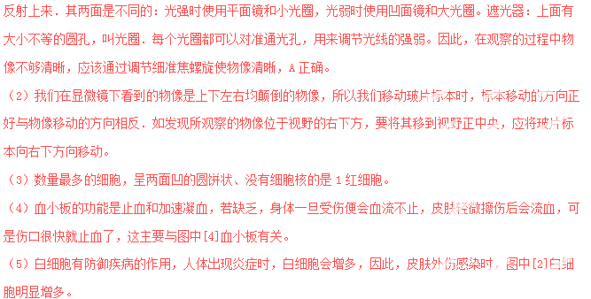 19.【黑龍江省齊齊哈爾市2015年中考生物試卷】如圖是“ 用顯微鏡觀察人血的永久圖片”的實驗,請你據(jù)圖回答下列問題.