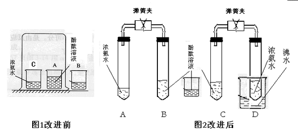 ③在B、C試管內(nèi)分別倒入適量的沸水備用。另在A、D試管中分別倒入2mL濃氨水,立即用帶橡皮塞的導(dǎo)管按圖2連接好,并將D試管放置在沸水中,同時打開彈簧夾,觀察現(xiàn)象。