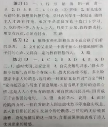 七年級下冊快樂過暑假語文 練習(xí)11—練習(xí)16