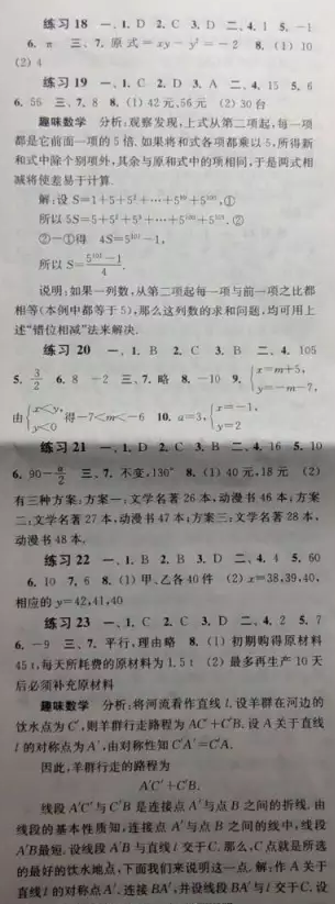 七年級下冊快樂過暑假數(shù)學(xué) 練習(xí)18—練習(xí)23