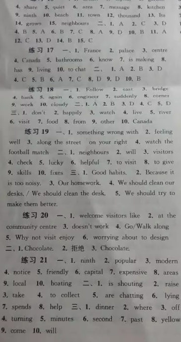 七年級下冊快樂過暑假英語 練習(xí)16—練習(xí)21