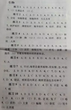 七年級下冊快樂過暑假生物 練習1—練習16