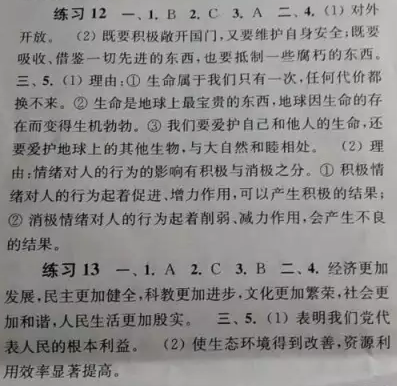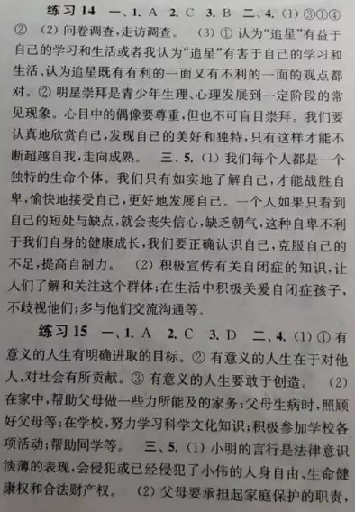 七年級(jí)下冊(cè)快樂(lè)過(guò)暑假思想品德 練習(xí)12—練習(xí)16